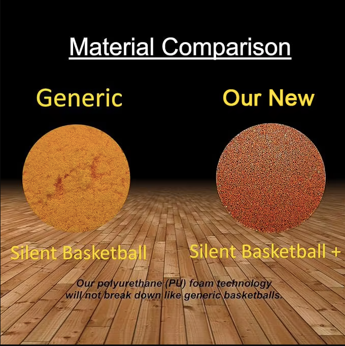 【Новейший бесшумный баскетбольный мяч 2024 года】 Наш бесшумный баскетбольный мяч — это новейшая инновация в баскетбольных технологиях. Благодаря уникальному процессу вспенивания этот баскетбольный мяч создается без необходимости надувания. Он имеет бесчисленное множество крошечных отверстий, заполненных воздухом, что обеспечивает улучшенную эластичность и бесшумную игру.